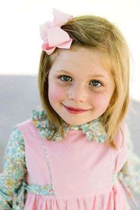 One of our favorite elements of the April pattern is the versatility of the bodice. In this adaptation, simple ties give this pinafore-inspired dress an entirely different look. We used corduroy for the dress and Liberty of London Meadow for the ties. The blouse is Allie made from the same Liberty Meadow print. Whenever we can use Liberty to contrast it is a winner in our book.